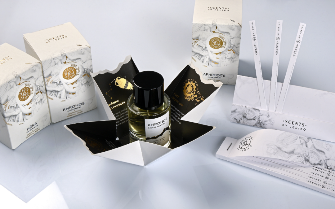 Pensé comme une véritable expérience sensorielle, ce projet de packaging s’inspire de l’univers des dieux de la mythologie grecque, dont les noms incarnent chaque fragrance. L’identité visuelle et les finitions ont été imaginées pour traduire cette dimension mythologique, noble et intemporelle.