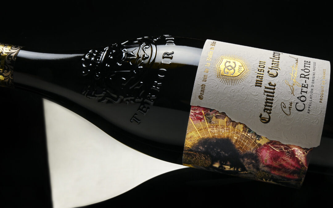 Pour le Côte-Rôtie de la Maison Camille Charleroy, nous avons imaginé avec notre client Vignobles Vellas une étiquette qui se touche autant qu’elle se regarde.
